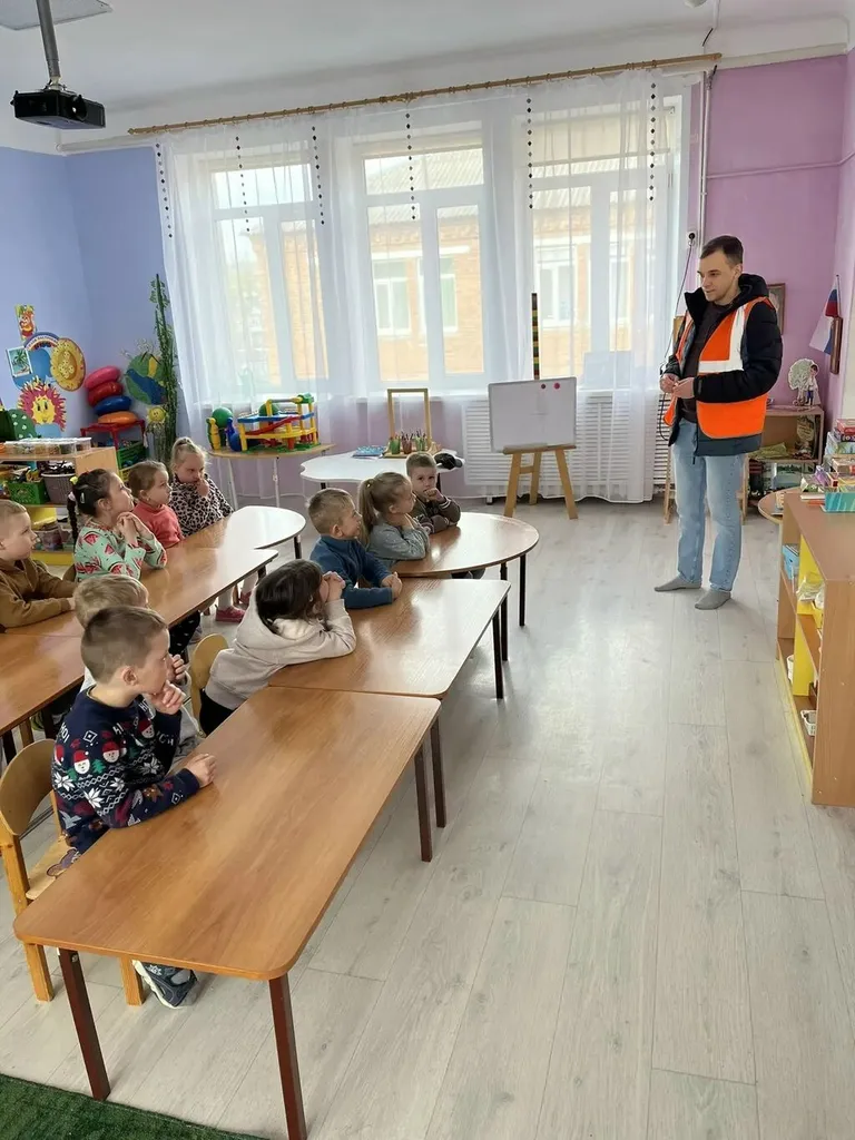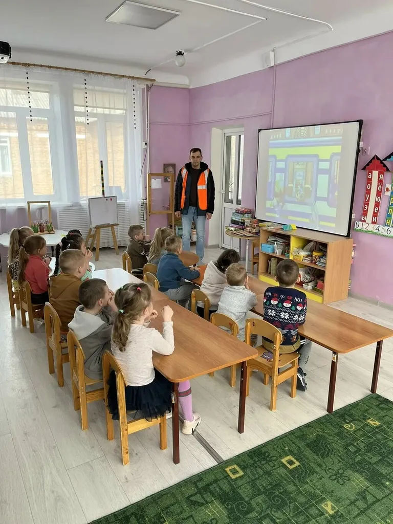 В целях профилактики транспортных происшествий в зоне движения поездов, в нашем детском саду 20.04.2026г. , состоялась встреча детей старшего дошкольного возраста с электромонтёром контактной сети РЖД, Чумаковым Сергей Сергеевичем. С ребятами провели беседу , направленную на предупреждение детского травматизма на железной дороге. Познакомили с правилами поведения на вокзале, платформе и безопасности на ЖД путях. Дети учились правильно оценивать поступки людей и закрепили свои знания в играх по теме. Дошколята с удовольствием ответили на вопросы сотрудника: где нужно переходить железнодорожные пути? Можно ли стоять у края платформы? Можно ли играть, находясь на платформе, и для чего на асфальте нанесена жёлтая полоса? Ребята отвечали бойко, потому что в садике проводится планомерная работа по правилам поведения на объектах железнодорожного транспорта.По завершению встречи было организован просмотр мультфильма.